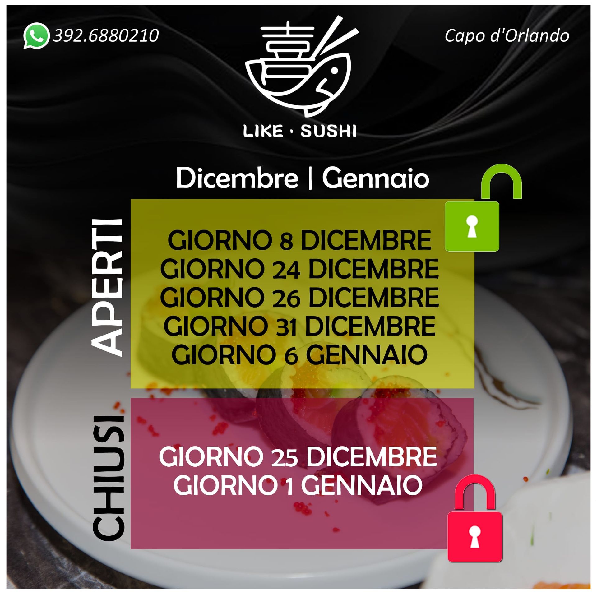 Like Sushi è un nuovissimo e accogliente ristorante di cucina orientale situato nel cuore di Capo d'Orlando, in provincia di Messina, precisamente in Via Piave 54. La nostra location unica e moderna offre un'esperienza gastronomica indimenticabile, perfetta per chi desidera gustare i sapori autentici della cucina giapponese e cinese. Aperto sia a pranzo che a cena, Like Sushi propone la formula All You Can Eat, permettendo di assaporare una vasta selezione di piatti orientali senza limiti. Disponiamo anche di box da asporto, ideali per godersi la nostra cucina comodamente a casa.